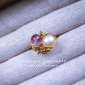 ひとつひとつ色や形の異なる淡水パールに天然石をかけ合わせた美しいリングです。