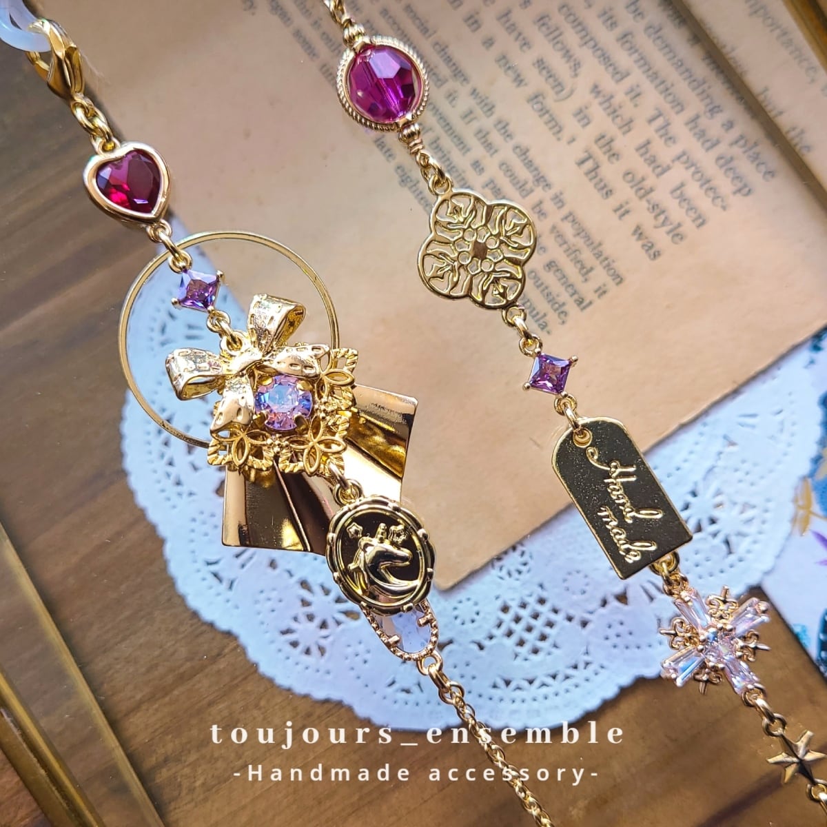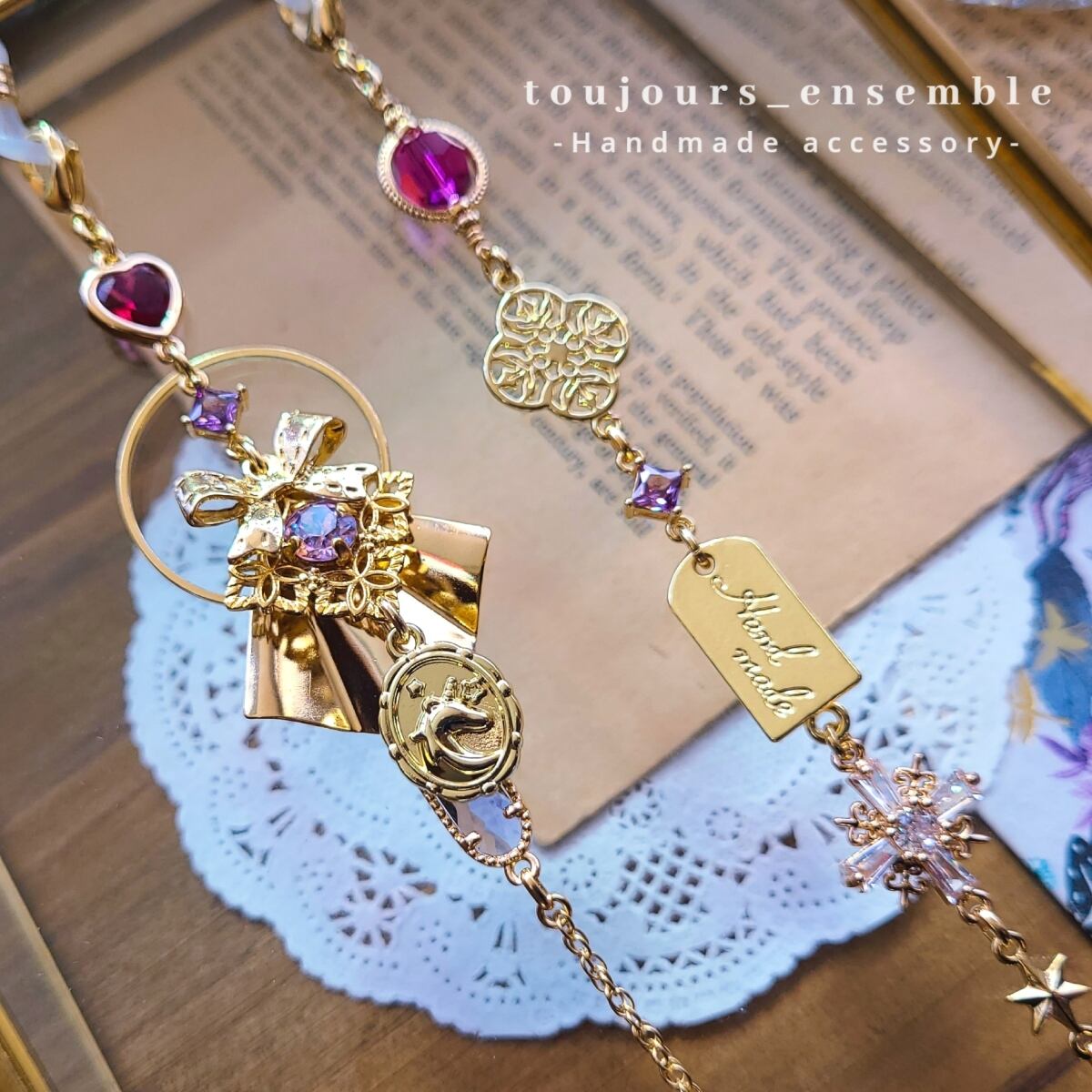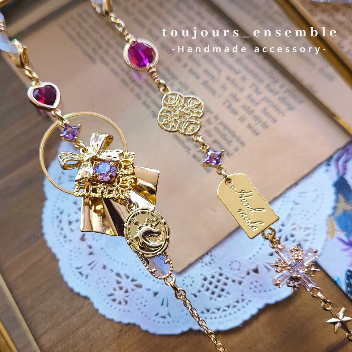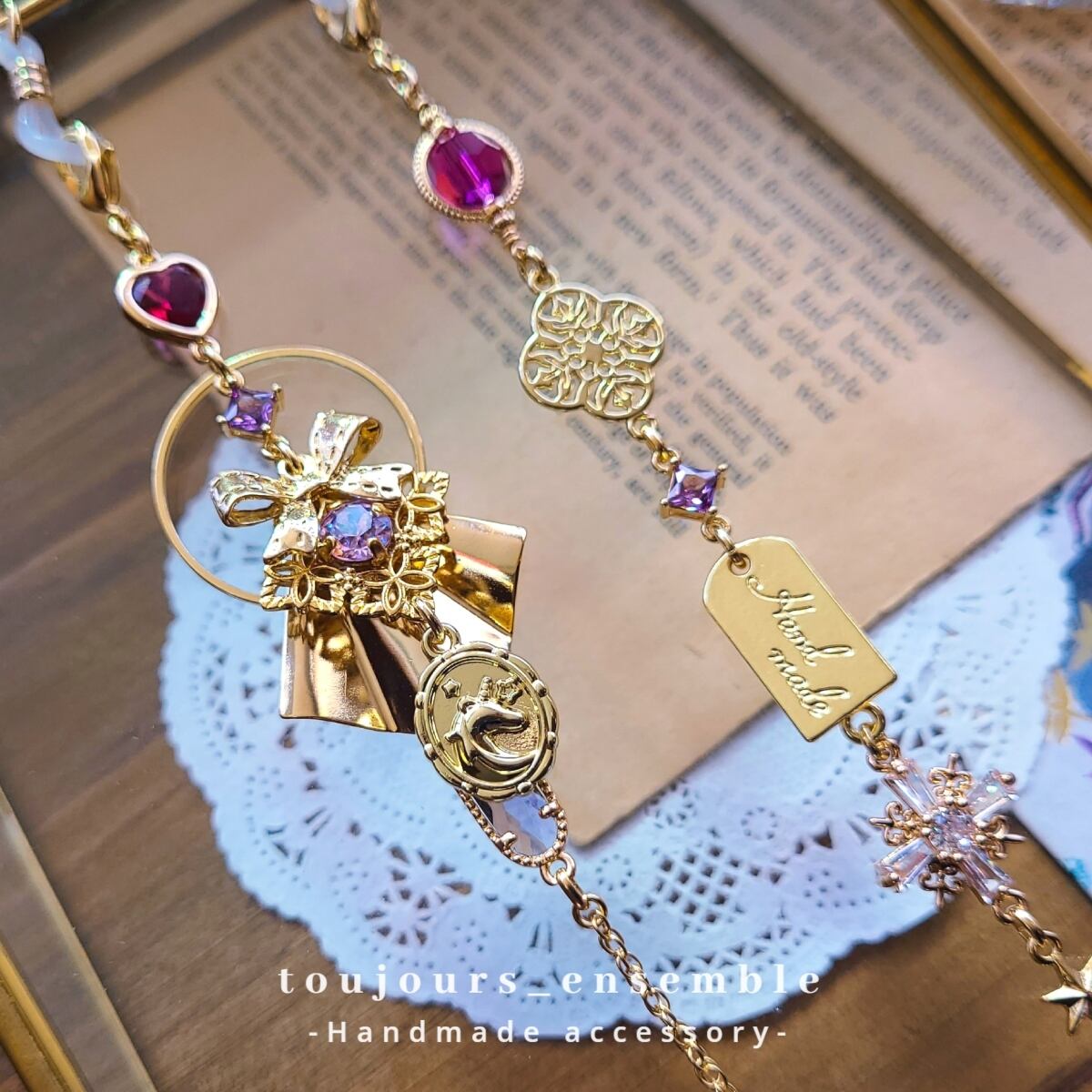 心ときめくモチーフをふんだんに詰め込んだ夢のグラスチェーン(眼鏡チェーン)です。